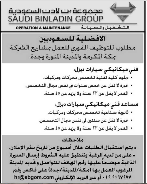 وظائف مجموعة بن لادن السعودية منشور فى 8 7 2015