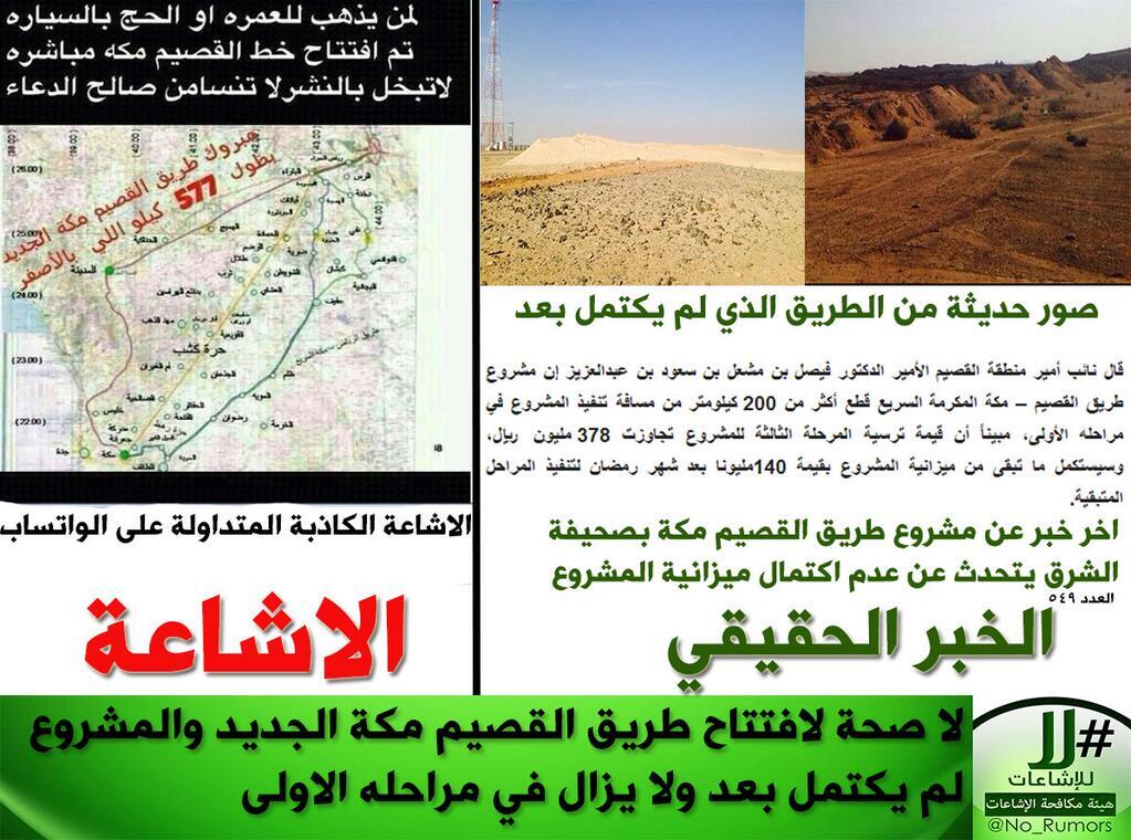 هيئة مكافحة الإشاعات Na Twitteru لا صحة لافتتاح طريق القصيم مكة الجديد ونؤكد ان المشروع لم يكتمل بعد ولا يزال في مراحله الاولى لا للإشاعات Http T Co Jzilg7xo4n