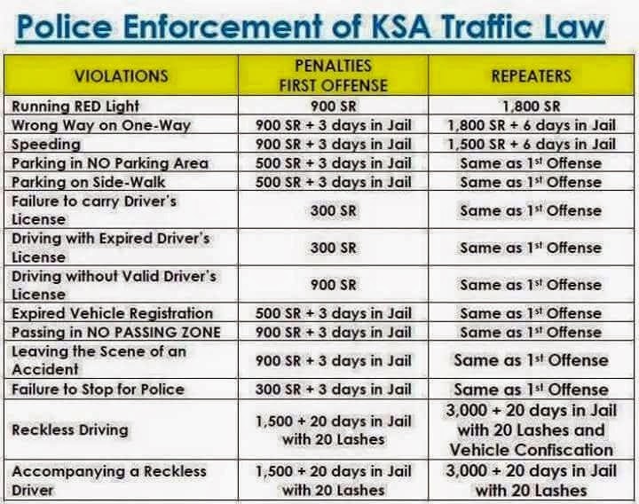 Penalties For Violating Kingdom Of Saudi Arabia Traffic Laws Download Table